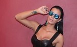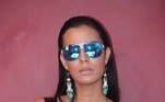 Ela também usou top cropped e óculos de lentes espelhadas