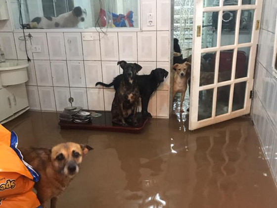 Cães e gatos foram surpreendidos pela água que tomou conta de todos os cômodos