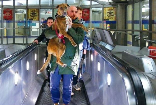 Escadas ou esteiras rolantes? Cachorro deve ir no colo