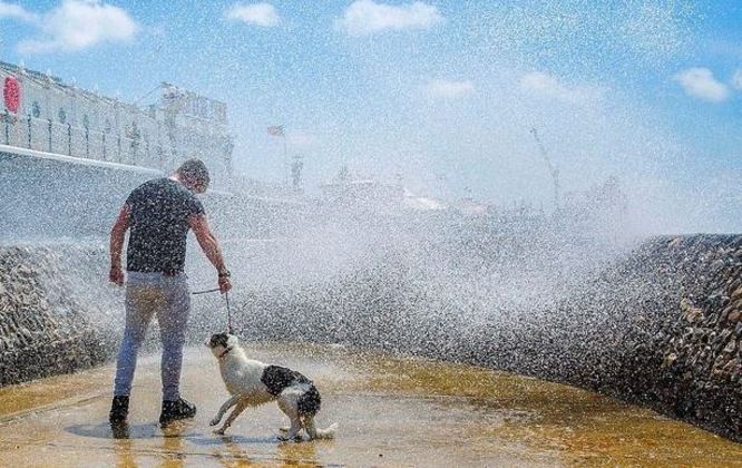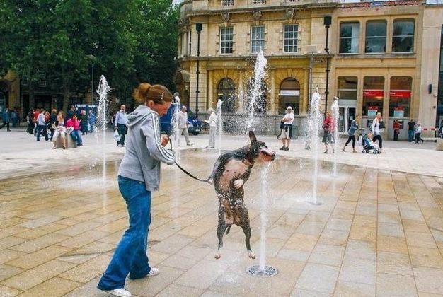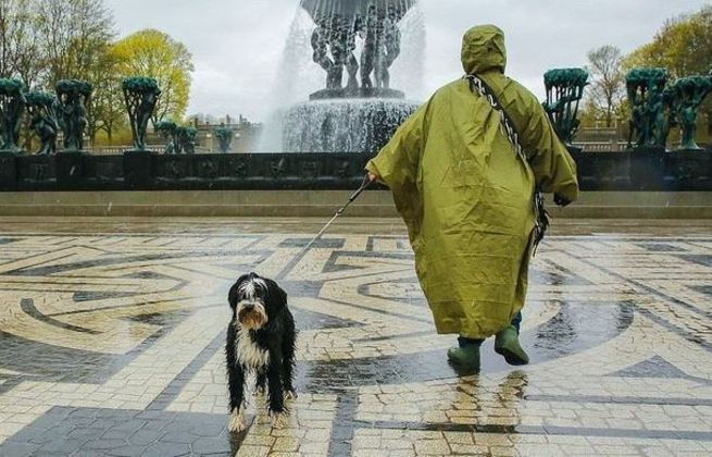 Quem está mais molhado? A dupla foi registrada em um fonte de Oslo, capital da Noruega