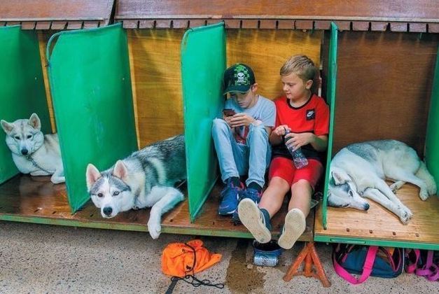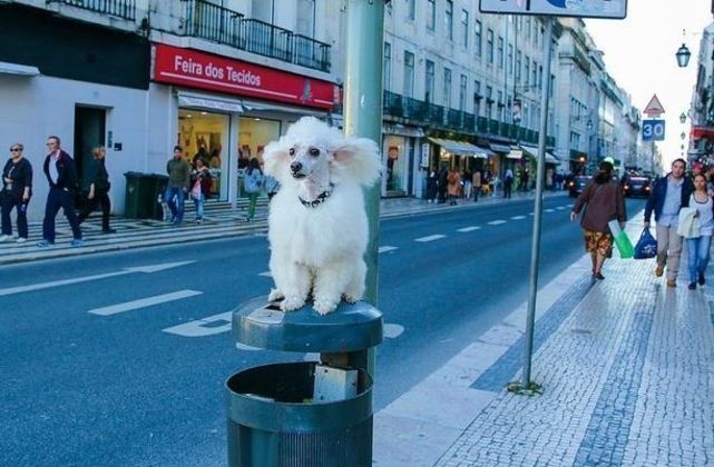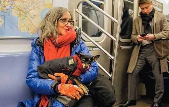 As imagens foram publicadas no livro Barking e mostram cães dirigindo carro, dentro de bolsas, no metrô e até na barbearia. É muita fofura! Veja: